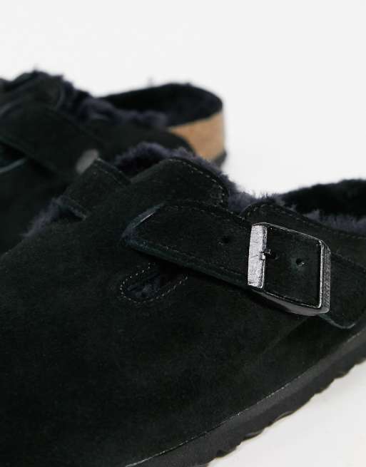 Birkenstock Boston Clogs In Black With Fur Lining Asos